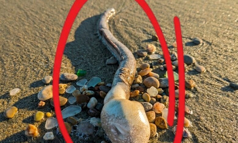 Local observation soon provided a more grounded explanation. A fisherman at the scene identified it as a dead eel, its appearance altered by decomposition, seawater exposure, and natural gas buildup. What had briefly seemed mysterious was quickly clarified as a known marine animal affected by the conditions of the tide.